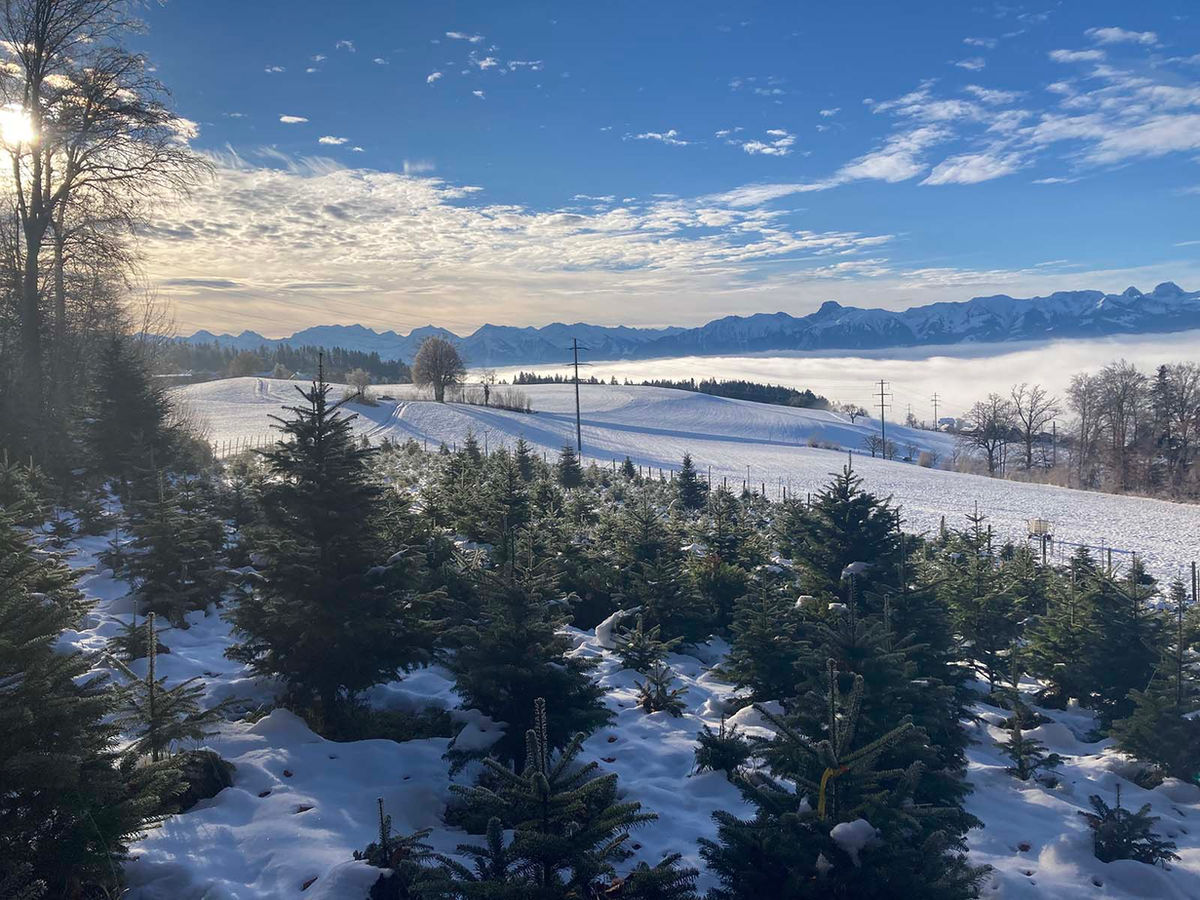 Nebst den beliebten Weihnachtsbäumen sind von unserem Hof auch weitere nachhaltige Produkte erhältlich, wie zum Beispiel Kalbs- und Rindfleisch sowie Käse.